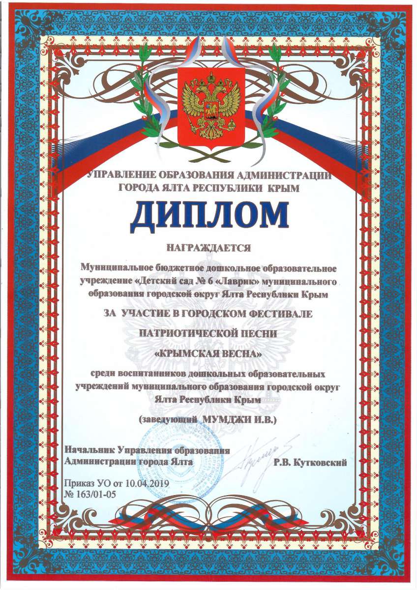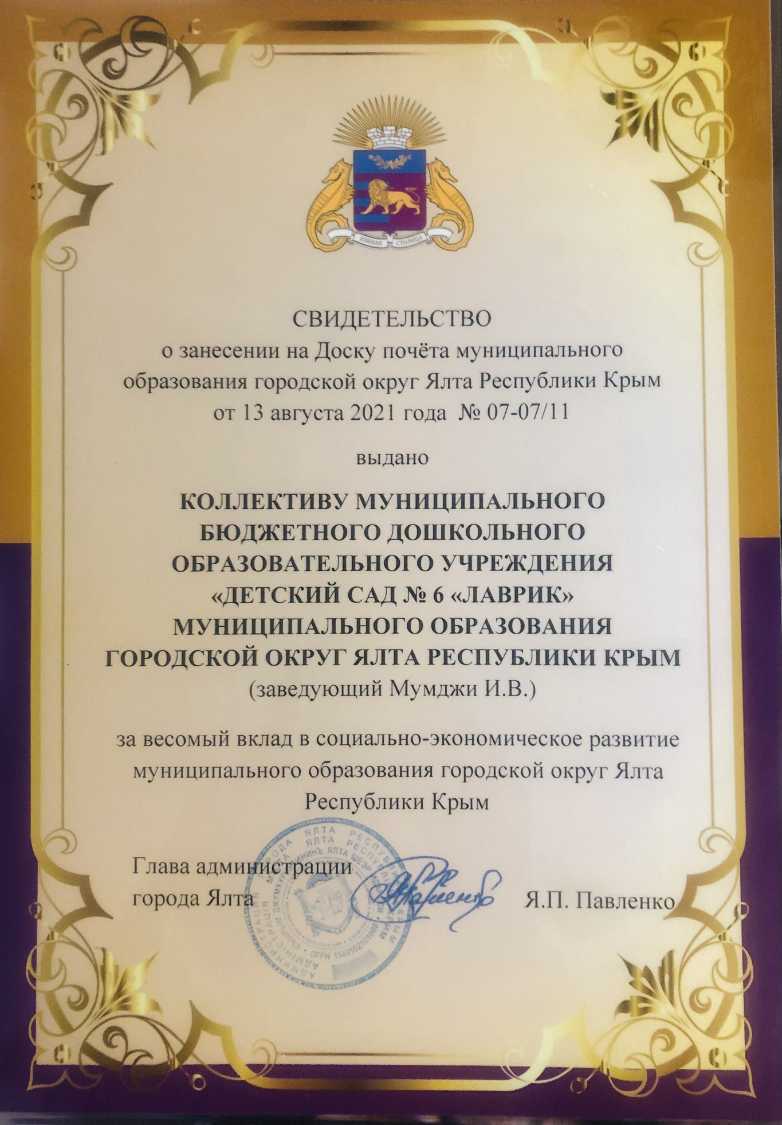 Муниципальное бюджетное дошкольное образовательное учреждение «Детский сад № 6 «Лаврик» муниципального округа город-курорт Ялта Республики Крым