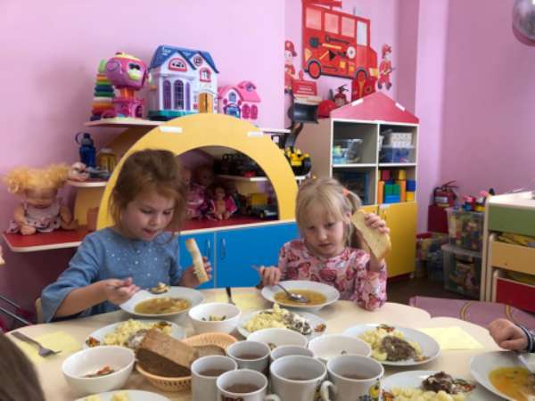 В дошкольном учреждении установлено четырёх разовое питание (завтрак, второй завтрак, обед, полдник). Меню составляется с использованием продуктов, включённых в ассортимент основных продуктов питания, рекомендуемых для детей. В меню включаются ежедневно следующие продукты: молоко, кисломолочные напитки, сметана, мясо, картофель, овощи, фрукты, соки, хлеб, крупы, сливочное и растительное масло, сахар, соль.