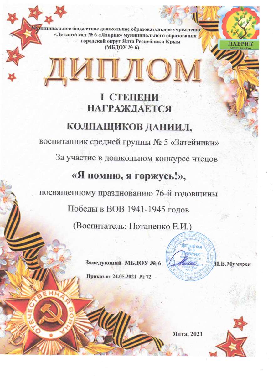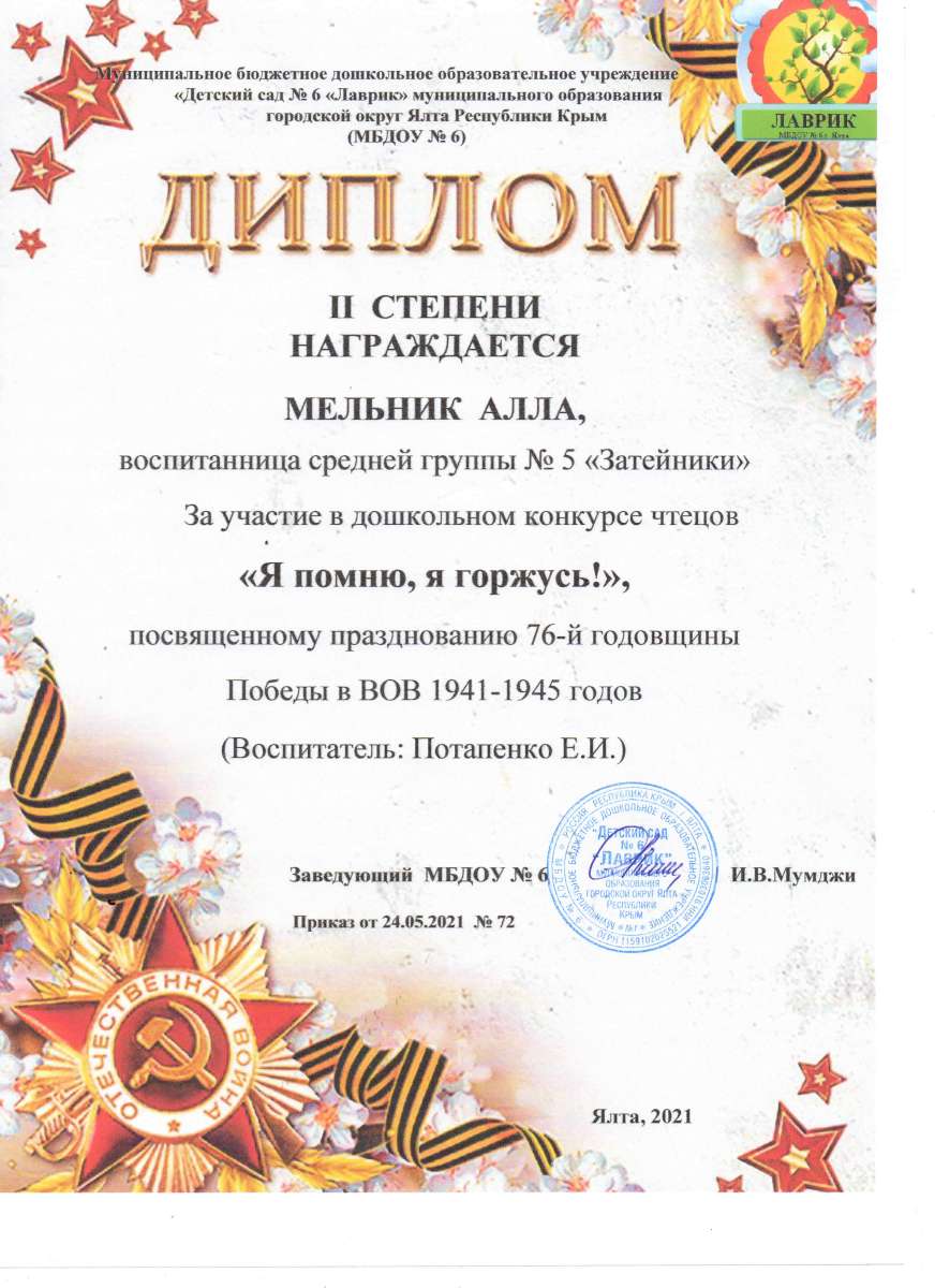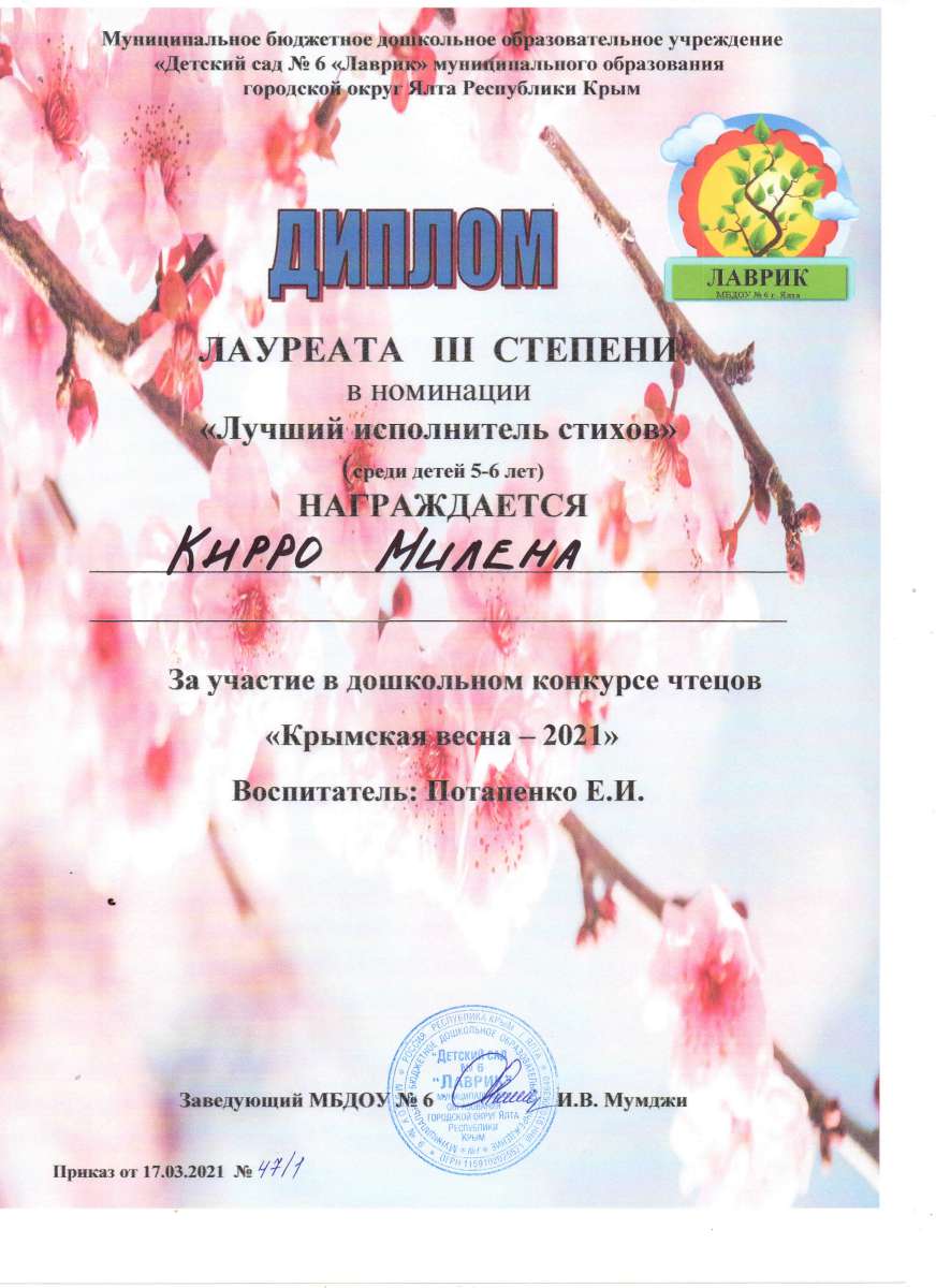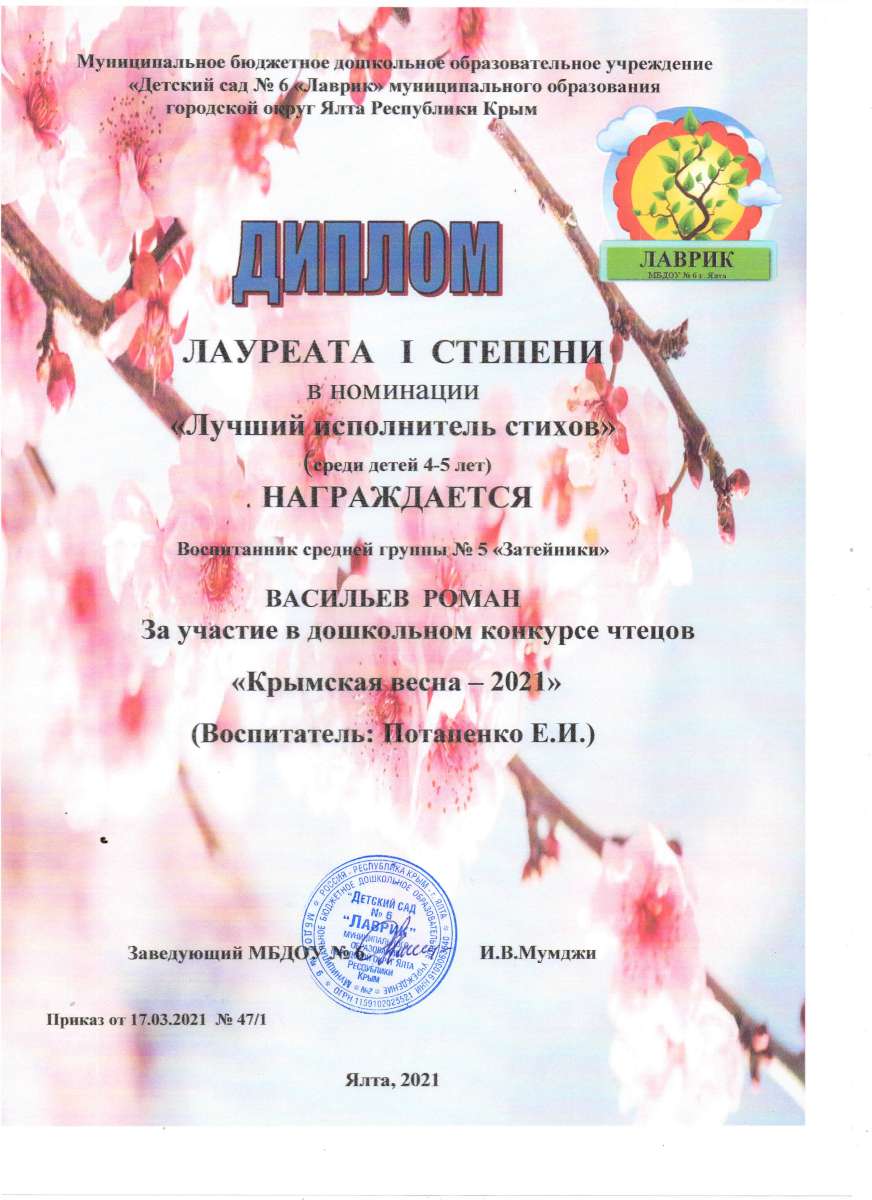 Муниципальное бюджетное дошкольное образовательное учреждение «Детский сад № 6 «Лаврик» муниципального округа город-курорт Ялта Республики Крым