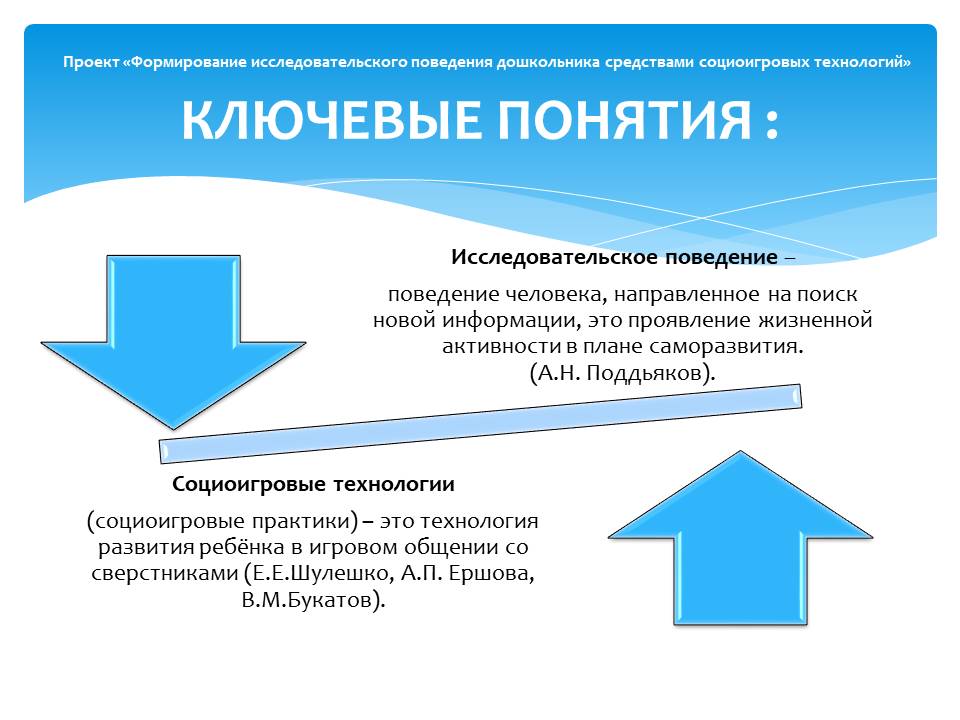 Исследовательское поведение – поведение человека, направленное на поиск новой информации, это проявление жизненной активности в плане саморазвития. Исследовательское поведение может быть качественно разным. Оно может развиваться спонтанно, на основе интуитивных стремлений с использованием «метода проб и ошибок», а может быть и более конструктивным, сознательным, выверенным логически. То есть построенным на анализе собственных действий, синтезе получаемых результатов, оценке, логическом прогнозе (А.Н. Поддьяков).