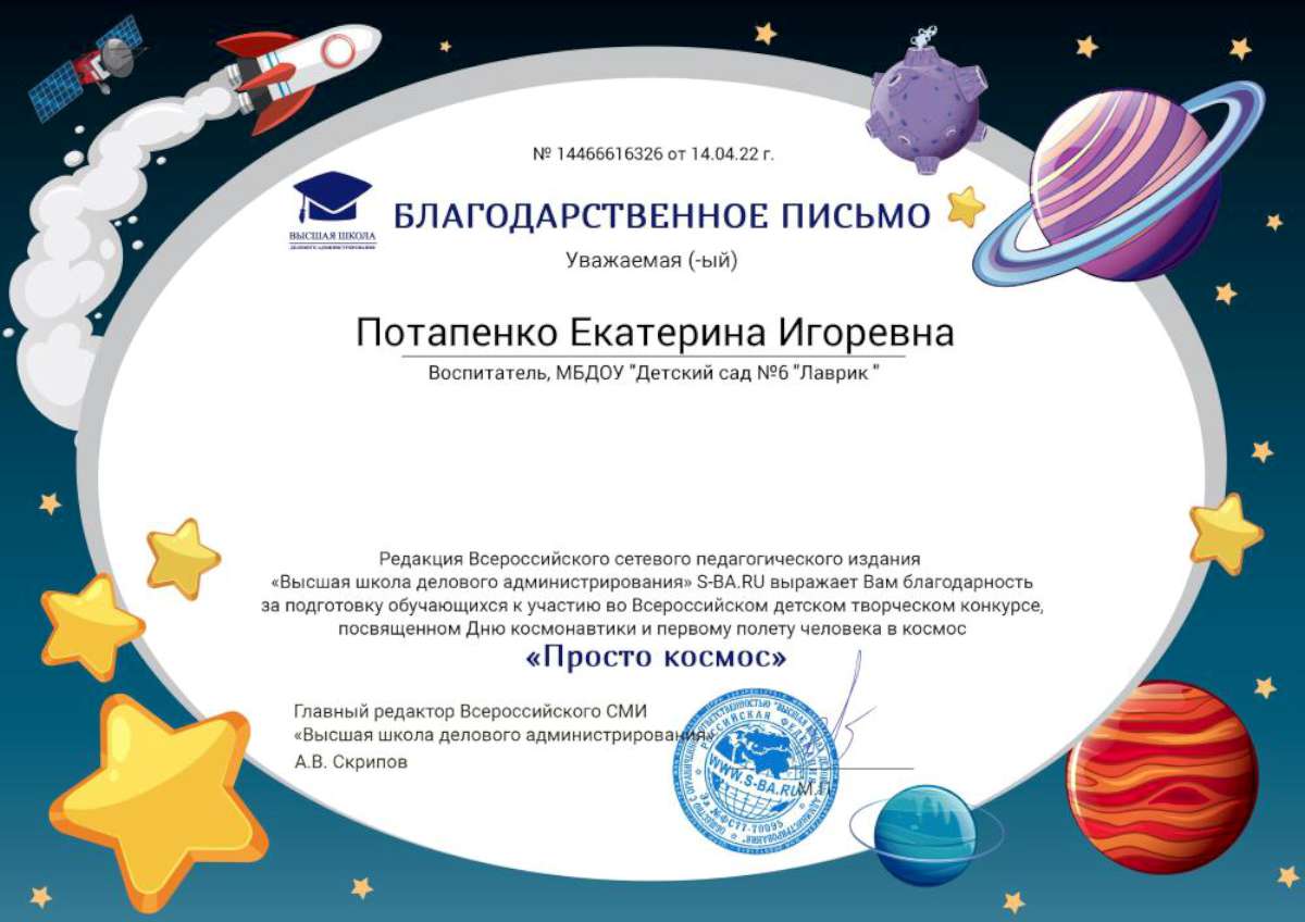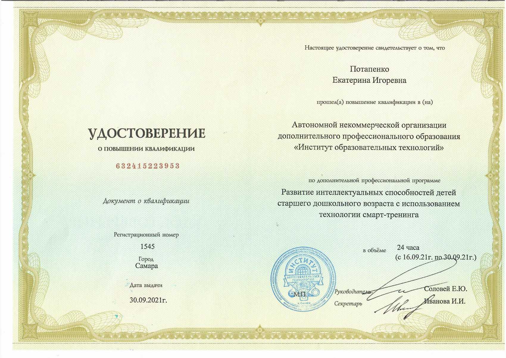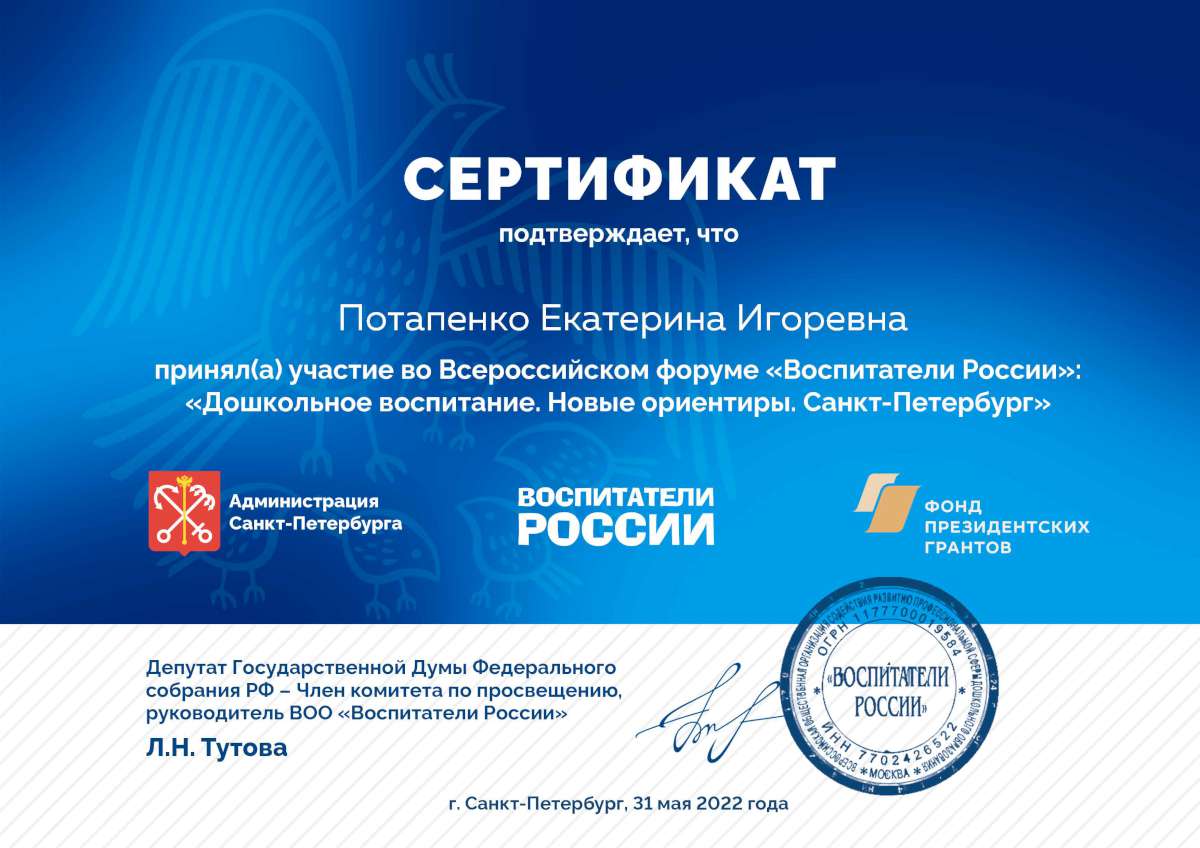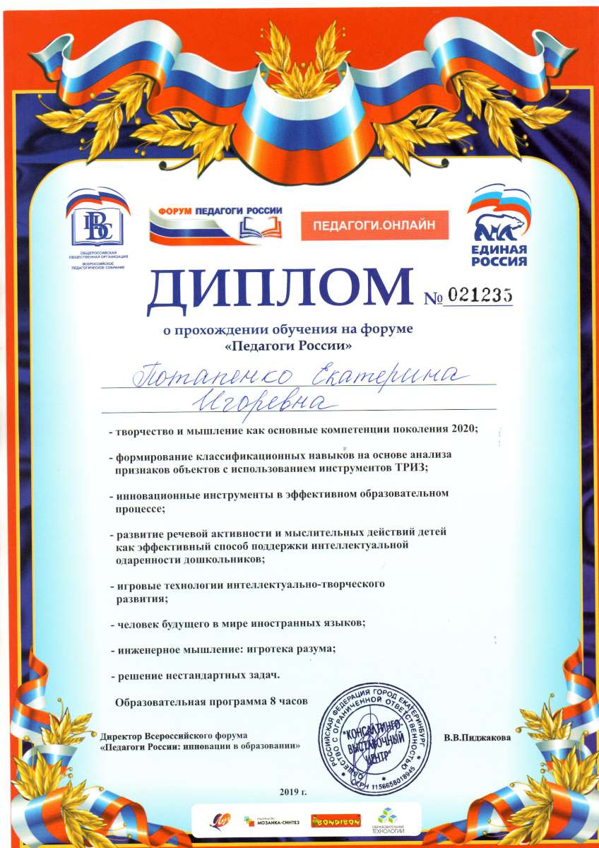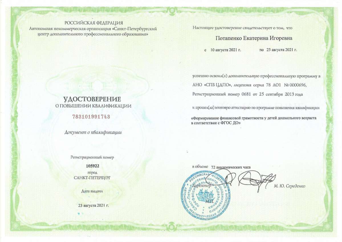 Фамилия, имя, отчество: Потапенко Екатерина Игоревна