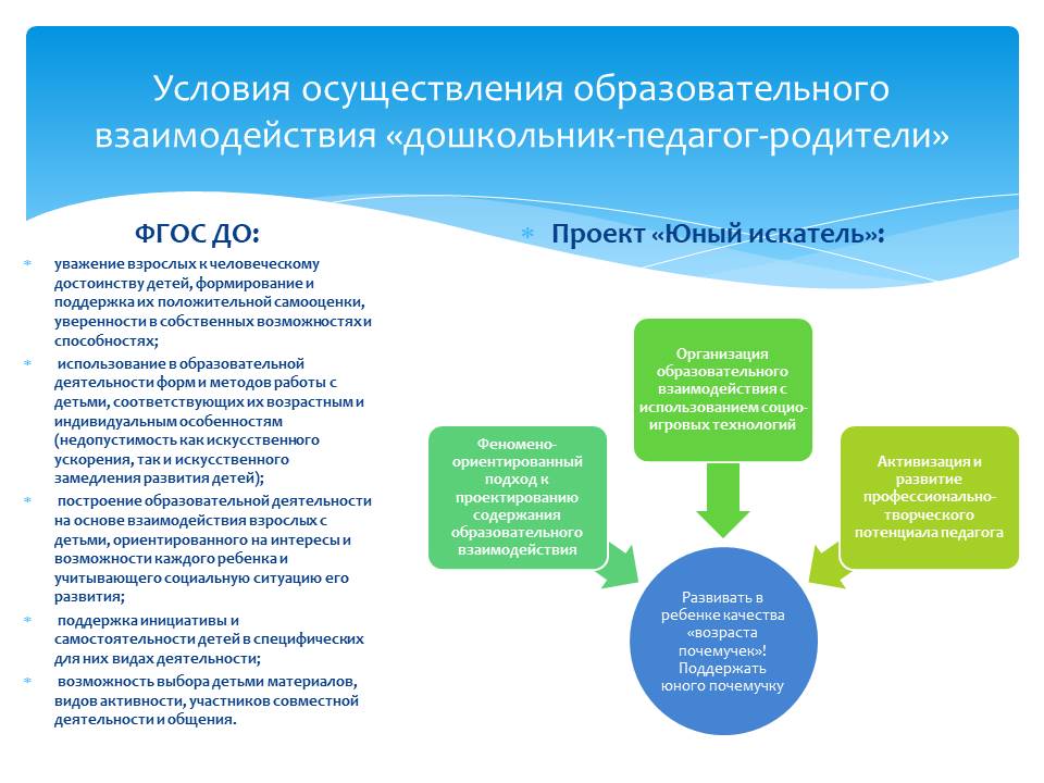 во – вторых, на практическое воплощение в группе эмоционально комфортных условий, средствами социоигровых практик, способствующих познавательному развитию личного потенциала каждого воспитанника;
