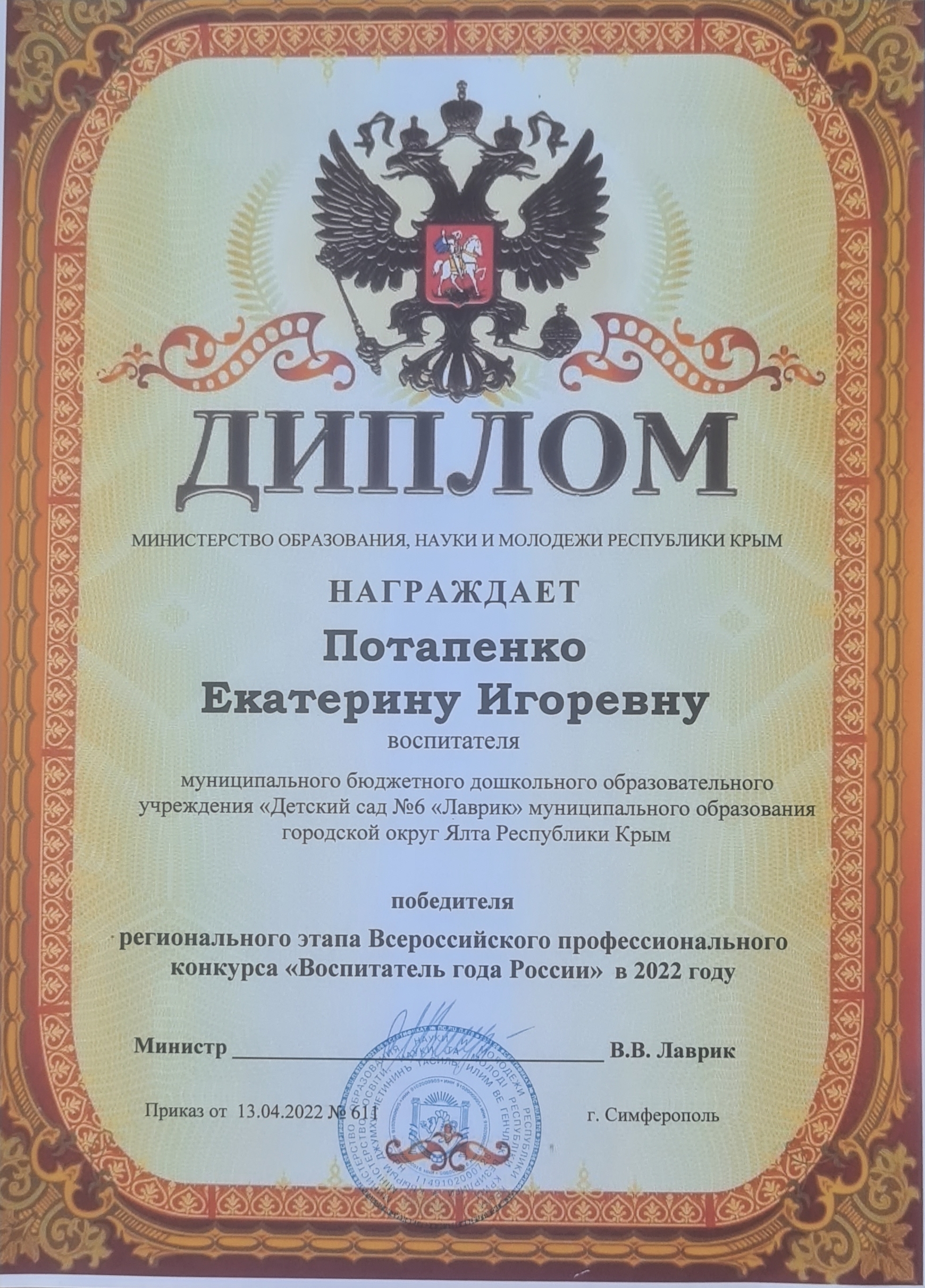 Ялтинка победила в региональном конкурсе «Воспитатель года России-2022» https://gorod24.online/yalta/news/241866-yaltinka_pobedila_v_regionalnom_konkurse_vospitatel_goda_rossii2022.html